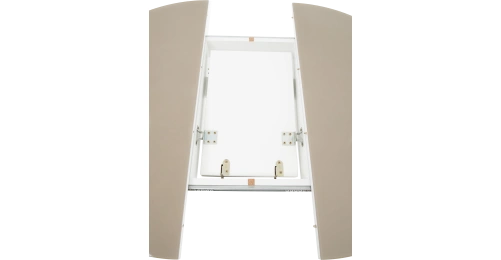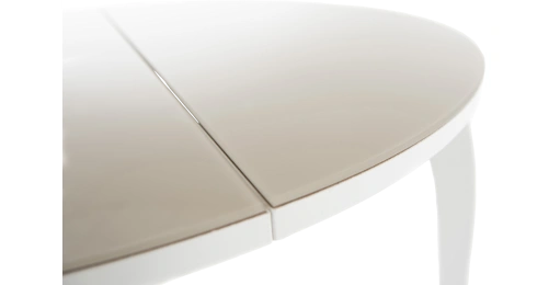 Кухонный стол Ривьера с круглой столешницей капучино цвета и белым каркасом. Материал изготовления подстолья: ЛДСП толщиной 18 мм.