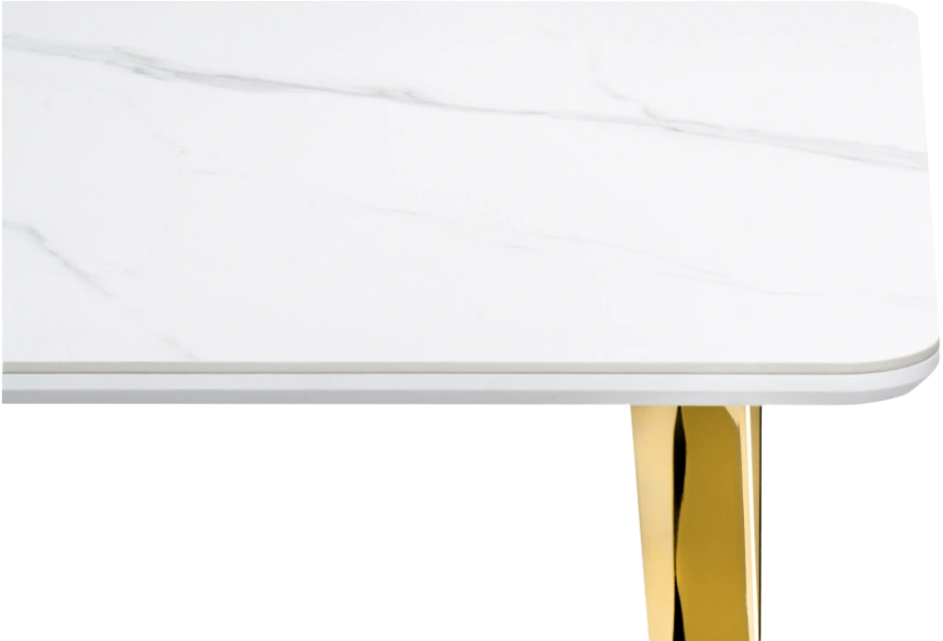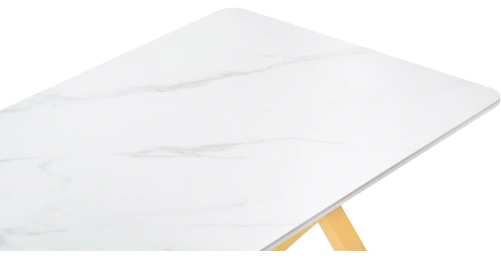 Кухонный стол Селена 3, 140x80x77, керамика, белый мрамор, каркас золотой