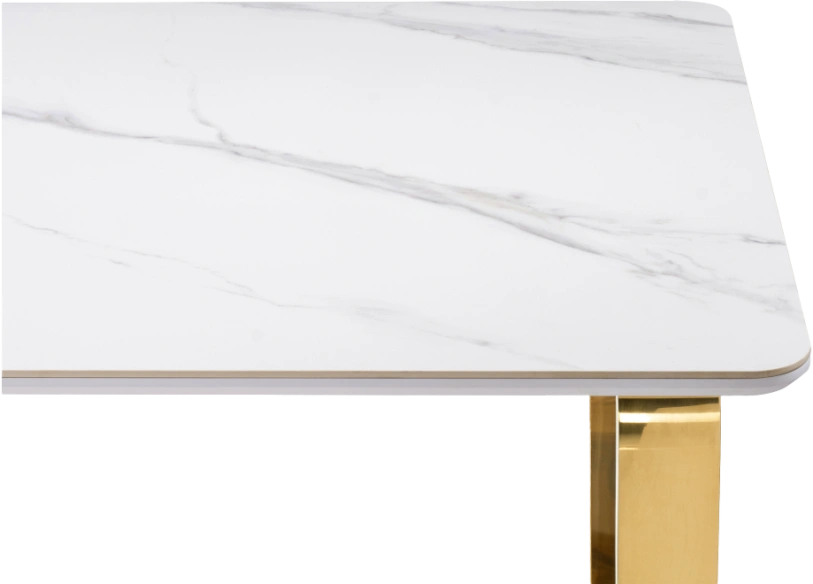 Кухонный стол раздвижной Селена 4, 180x90x77, керамика, белый мрамор, каркас золотой