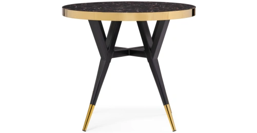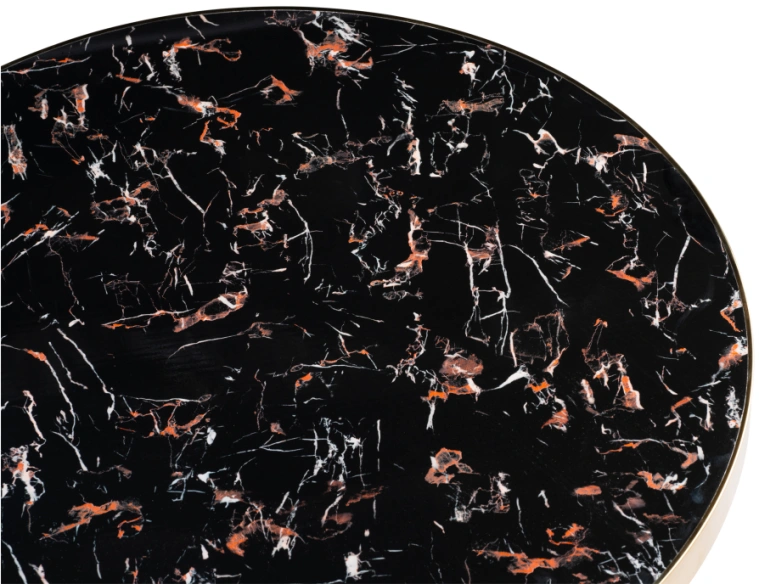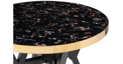 Толщина столешницы: 4,5 см. Материал каркаса - Металл; Материал ножек - Металл; Материал столешницы - МДФ; Цвет каркаса - Черный; Цвет ножек - Черный; Цвет столешницы - Черный; Цвет подстолья - Золотой; Ширина - 80; Высота - 72; Длина - 80;
