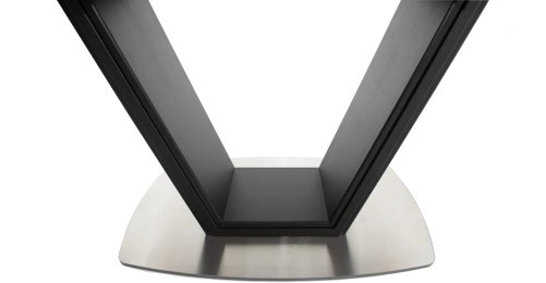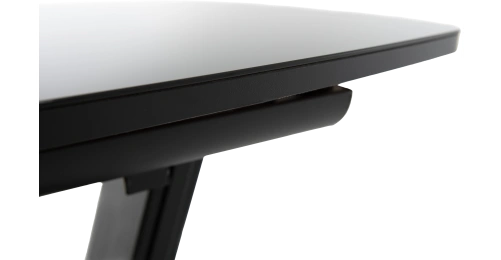 Кухонный стол «Севилья» со стеклянной столешницей, черного цвета, в котором установлен автоматический механизм раскладки. Отличительной чертой этого стола является V-образная опора, выполненная из МДФ в цвете подстолья. К опоре крепится непосредственно столешница. Стол раздвижной, механизм синхронной раскладки — с подъемным механизмом, причем покрытие вкладыша так же изготовлено из закалённого стекла, что позволяет столу не терять эстетический вид, даже в разложенном варианте. Стоит отметить еще одну особенность стола «Севилья» — это выбор, как из покрытия закаленного стекла, оно может быть, как глянцевым (гладким), так и матовым, а также может использоваться высокопрочный пластик, в качестве покрытия.