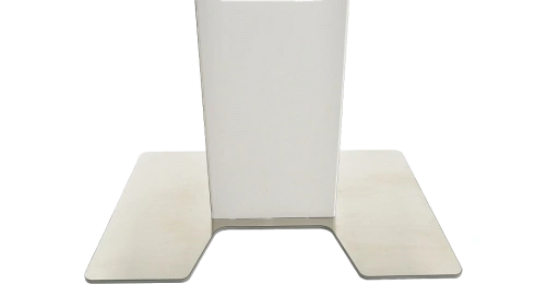 Кухонный стол «Тайбэй» со стеклянной столешницей белого цвета. Отличительной чертой этого стола является одна опора, выполненная из МДФ, в сочетании с металлической вставкой, в цвете подстолья. К опоре крепится непосредственно столешница. Стол раздвижной, механизм раскладки боковой, причем покрытие вкладышей так же изготовлено из закалённого стекла, что позволяет столу не терять эстетической окраски даже в разложенном варианте. Стоит отметить еще одну особенность стола «Тайбэй» — это выбор покрытия из закаленного стекла, оно может быть как глянцевым (гладким), так и матовым, а также очищенным с модификацией Opti.