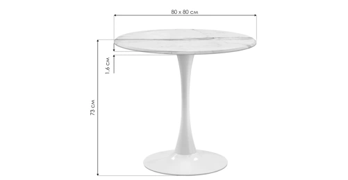 Кухонный стол Тулип, 80х73, МДФ, мрамор белый, каркас белый