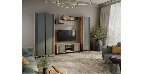 Модульная гостиная Богемия, дуб барокко / зелёный
