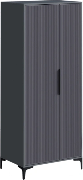 Первым элементом комплекта выступает вместительный двухдверный распашной шкаф. Внутреннее пространство организовано максимально эффективно: предусмотрены специальные полки для хранения вещей и удобная штанга для вешалок, что позволяет грамотно организовать гардеробную зону.