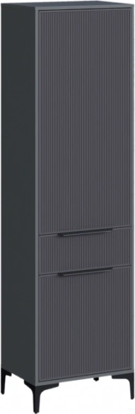 По бокам расположены два высоких шкафа размером 55 × 40,3 × 196 см. Шкаф-витрина с элегантной стеклянной верхней дверцей прекрасно подходит для демонстрации книг и декора, а шкаф-пенал обеспечивает дополнительное закрытое хранение. Оба шкафа оснащены выдвижными ящиками и удобными полками.