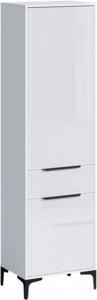 Два высоких шкафа-пенала дополняют композицию, создавая вертикальное зонирование пространства. Узкая конструкция не перегружает помещение, а вместительные полки позволяют организовать хранение различных предметов – от книг до сезонных вещей. В каждом шкафу предусмотрен выдвижной ящик для мелких предметов.
