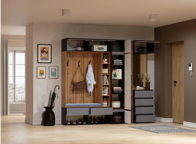 Модульная прихожая Роут, комплектация 3, венге / графит софт