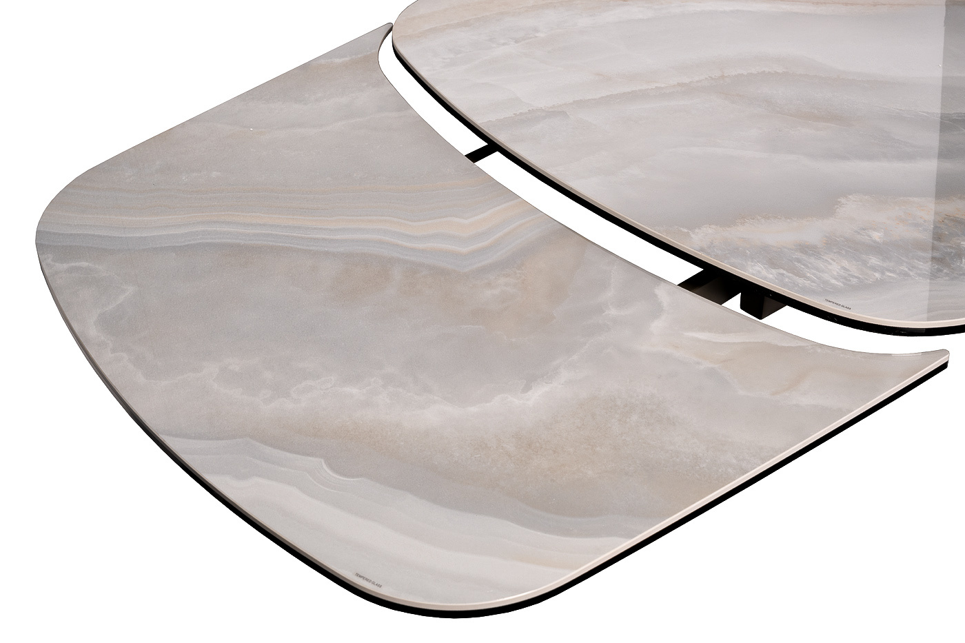 Раскладной обеденный стол из керамики и металла – идеальный выбор для современных интерьеров. Сочетание благородной керамической столешницы, имитирующей натуральный камень, с элегантной металлической основой создает изысканный и современный образ. Благодаря инновационному механизму, стол легко раскладывается, позволяя с комфортом разместить за ним как небольшую компанию, так и большое количество гостей. Керамическая столешница не только красива, но и практична – устойчива к высоким температурам и легко моется. Просьба обратить внимание, что при перемещении стол следует держать только за металлическое основание, а не столешницу! Иначе столешница может потрескаться.