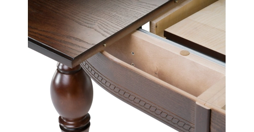 Толщина столешницы: 3 см. Материал каркаса - Массив бука; Материал ножек - Массив бука; Материал столешницы - Шпон / МДФ; Цвет каркаса - Орех; Цвет ножек - Орех; Цвет столешницы - Орех; Цвет подстолья - Орех; Ширина - 110; Высота - 77; Длина стола в разложенном виде - 200; Длина - 150;