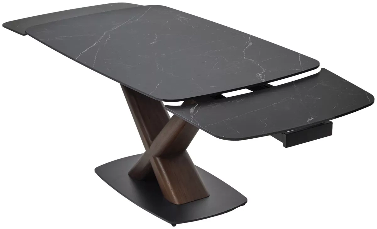 - двухсторонняя торцевая система раскладывания, две независимые вставки по 40 см позволяют увеличить длину столешницы на 200 или 240 см при необходимости;