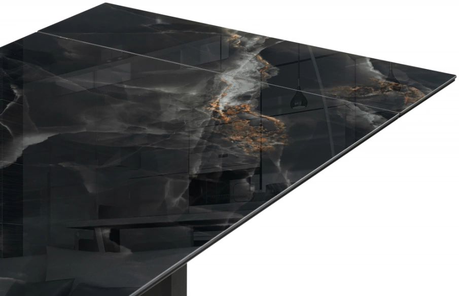 Толщина столешницы: 2,5 см. Материал каркаса - МДФ; Материал ножек - МДФ; Материал столешницы - Керамика / МДФ; Цвет каркаса - Черный; Цвет ножек - Черный; Цвет столешницы - Черный; Цвет подстолья - Черный; Ширина - 100; Высота - 77; Длина стола в разложенном виде - 260; Длина - 200;