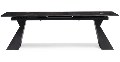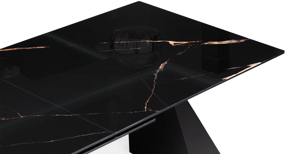 Толщина столешницы: 2 см. Материал каркаса - Металл; Материал ножек - Металл; Материал столешницы - Стекло / МДФ; Цвет каркаса - Черный; Цвет ножек - Черный; Цвет столешницы - Черный; Цвет подстолья - Черный; Ширина - 100; Высота - 75; Длина стола в разложенном виде - 290; Длина - 240;