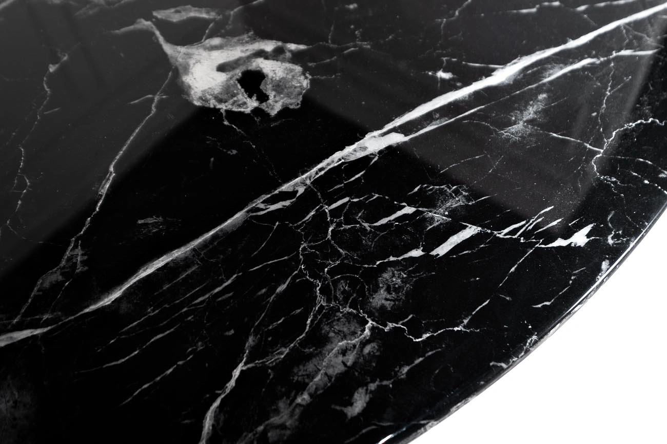 Дизайнерский обеденный стол с имитацией мрамора украсит вашу кухню или столовую. Глянцевая столешница из МДФ покоится на устойчивой опоре из прочного стеклопластика. Такой стол гораздо менее тяжелый и громоздкий, чем из натурального камня, при этом не менее эффектный. Толщина столешницы - 30мм.
