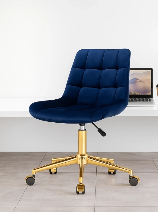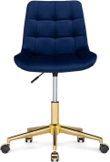 Материал каркаса - Металл; Материал сиденья - Велюр; Материал ножек - Металл; Материал обивки - Велюр; Цвет каркаса - Золотой; Цвет сиденья - Синий; Цвет ножек - Золотой; Цвет обивки - Синий; Ширина - 49; Глубина - 60; Высота - 84; Ширина сиденья - 46; Глубина сиденья - 41; Высота сиденья - 46; Высота сиденья максимальная - 52; Высота максимальная - 92;