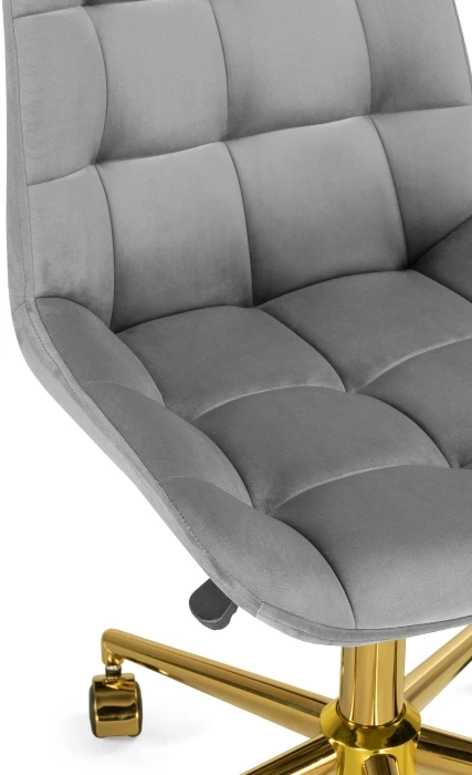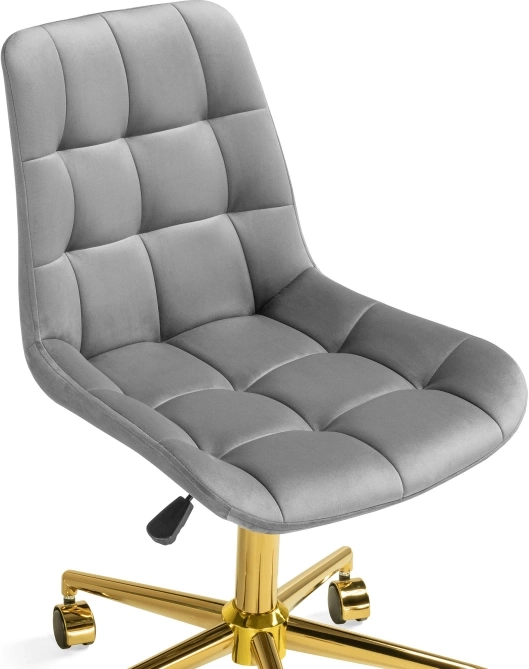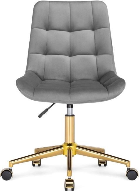 Материал каркаса - Металл; Материал сиденья - Велюр; Материал ножек - Металл; Материал обивки - Велюр; Цвет каркаса - Золотой; Цвет сиденья - Серый; Цвет ножек - Золотой; Цвет обивки - Серый; Ширина - 49; Глубина - 60; Высота - 84; Ширина сиденья - 46; Глубина сиденья - 41; Высота сиденья - 46; Высота сиденья максимальная - 52; Высота максимальная - 92;