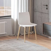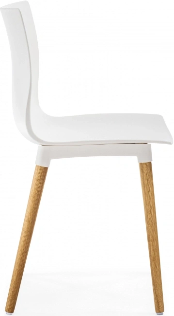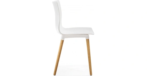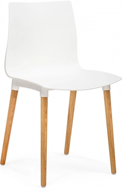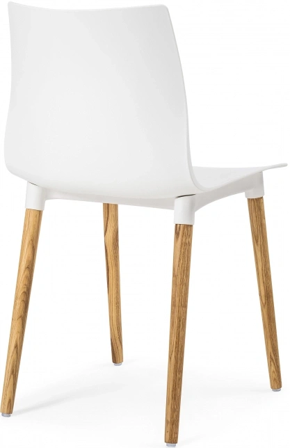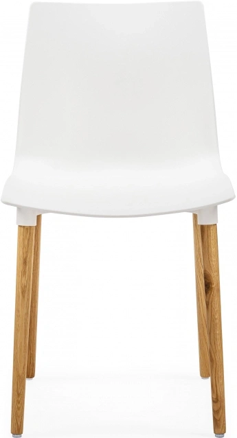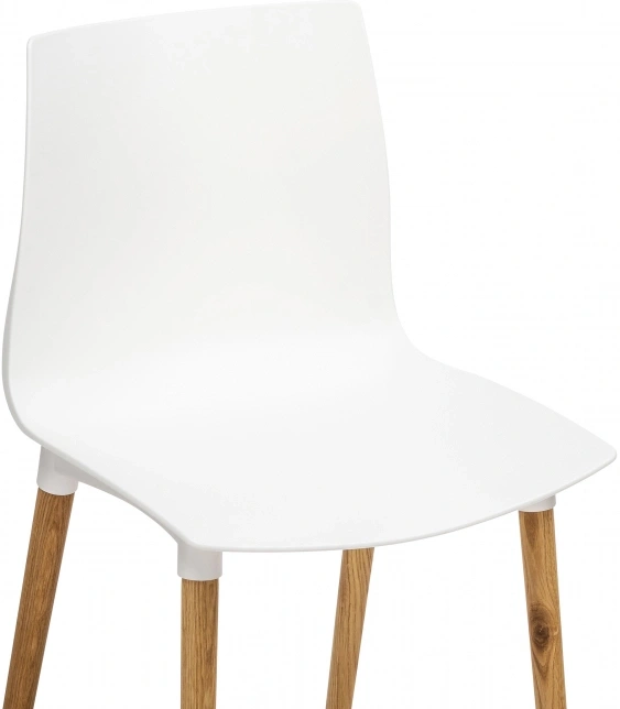 Визуально модель выделяется интересным контрастным решением: белый цвет сиденья и спинки эффектно сочетается с натуральным оттенком деревянных ножек, подчёркивающим природную текстуру дуба.