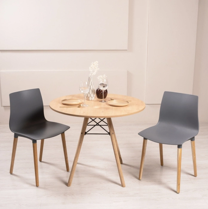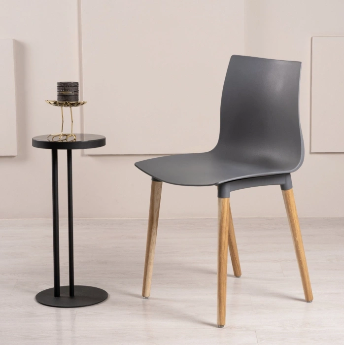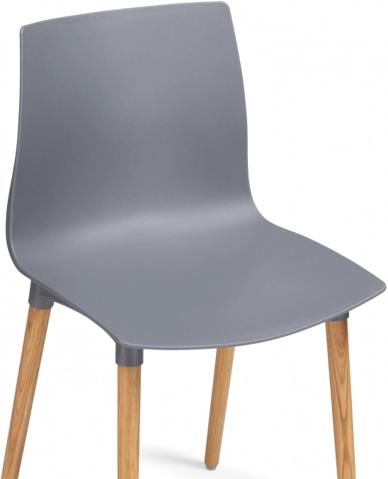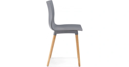 Визуально модель выделяется интересным контрастным решением: серый цвет сиденья и спинки эффектно сочетается с натуральным оттенком деревянных ножек, подчёркивающим природную текстуру дуба.