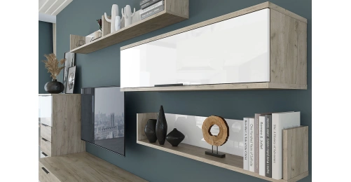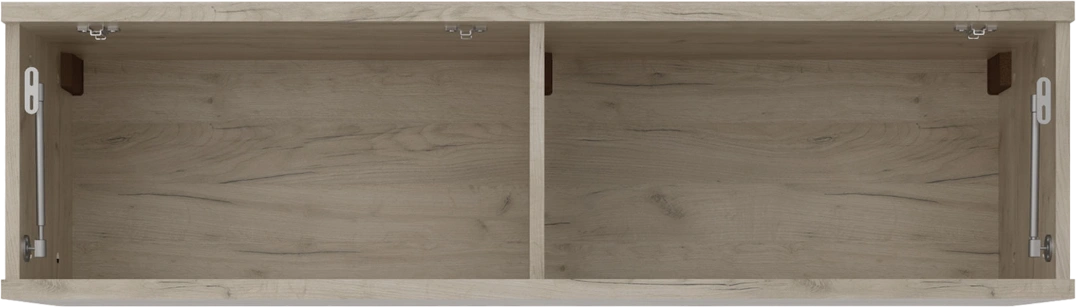 В навесных полках с фасадом установлены системы открывания газ-лифт.