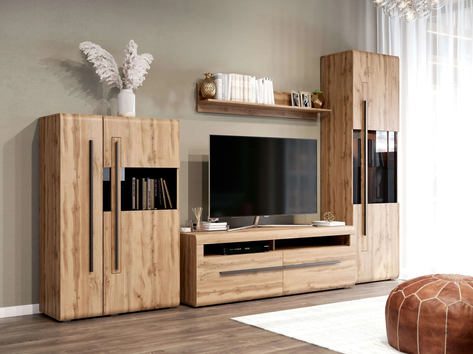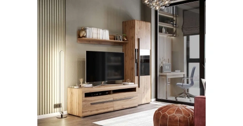 Корпус полки изготовлен из ЛДСП. Полка прекрасно сочетается с коллекцией для гостиной "Ницца".