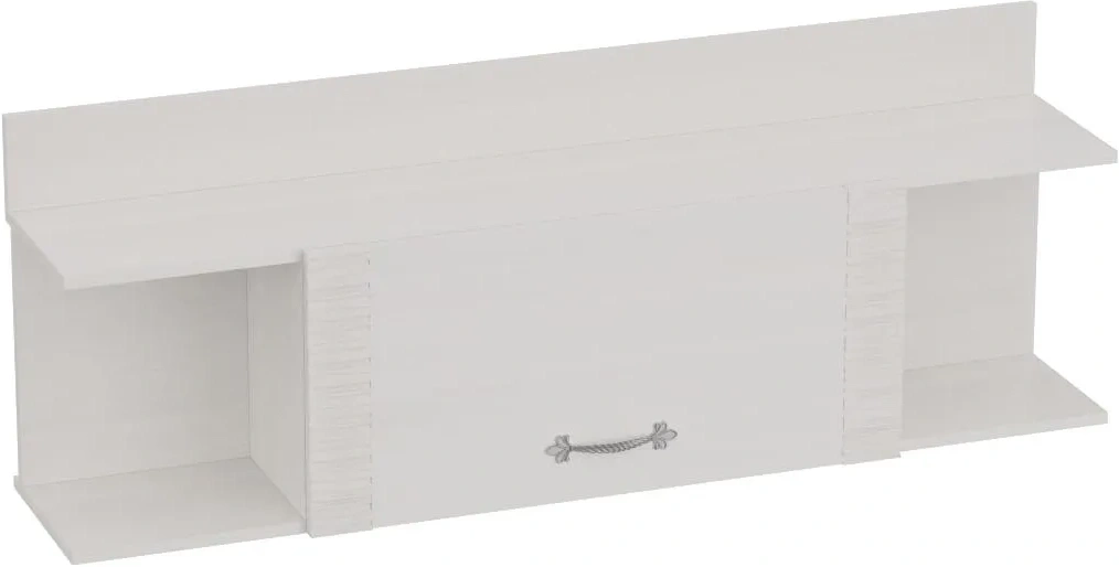 В полке имеются две боковые открытые ниши и центральная, закрытая дверцей. Дверца открывается вверх и удерживается в этом положении с помощью газовых кронштейнов.