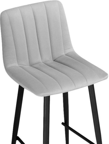 Материал каркаса - Металл; Материал сиденья - Велюр; Материал ножек - Металл; Материал обивки - Велюр; Цвет каркаса - Черный; Цвет сиденья - Серый; Цвет ножек - Черный; Цвет обивки - Серый; Ширина - 42; Глубина - 48; Высота - 92; Ширина сиденья - 42; Глубина сиденья - 30; Высота сиденья - 67;