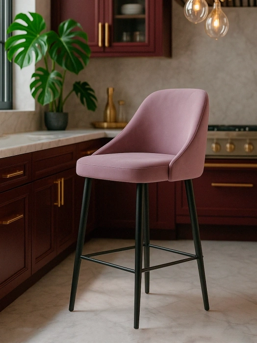 Барный стул Джама - это стильный и комфортный высокий стул с каркасом и ножками из металла и мягким велюровым сиденьем и спинкой. Он имеет удобную подножку для ног, что обеспечивает дополнительный комфорт при использовании стула. Каркас и ножки из металла обеспечивают прочность и долговечность стула, а также придают ему современный и элегантный вид. Этот стул идеально подойдет для использования в качестве барного стула или для использования за высокими столами в кафе и ресторанах.