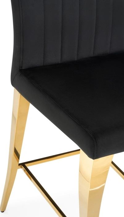 Стул Joan имеет элегантные ножки из гальванизированного металла, которые придают ему прочность и устойчивость. Сиденье стула выполнено из мелко-ворсистого велюра, что делает его мягким и комфортным для сидения. Стул также оснащен удобной подножкой под ноги, которая обеспечивает дополнительный комфорт. Стильный дизайн стула Joan позволяет использовать его как в домашней обстановке, так и в офисе или коммерческих помещениях.