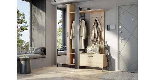 Прихожая комплектуется выдвижной штангой под одежду, стационарной штангой под одежду.