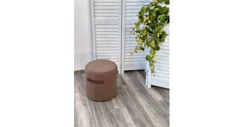 - Пуф обит мягкой тканью, напоминающую шерсть молодого ягненка. Ручки из экокожи.