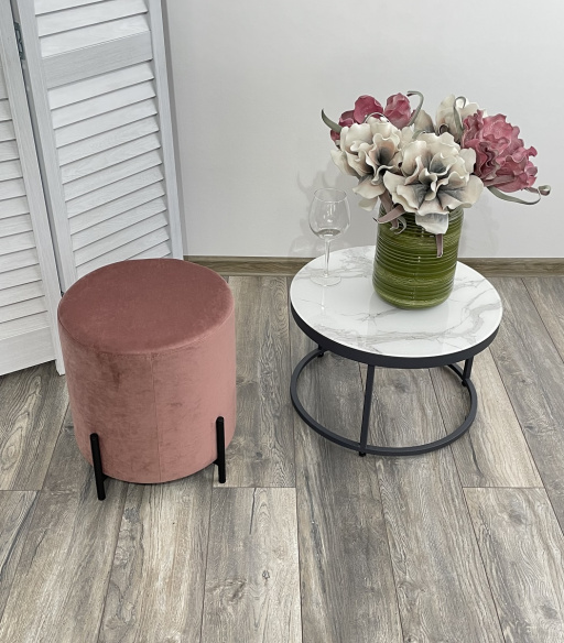 Пуф для гостиной ФЕЛИКС круглый розовый / черный каркас