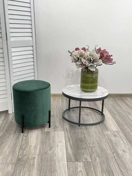Пуф для гостиной ФЕЛИКС круглый зеленый / черный каркас