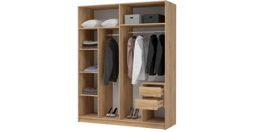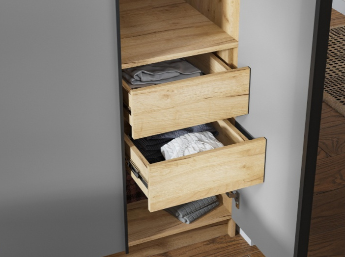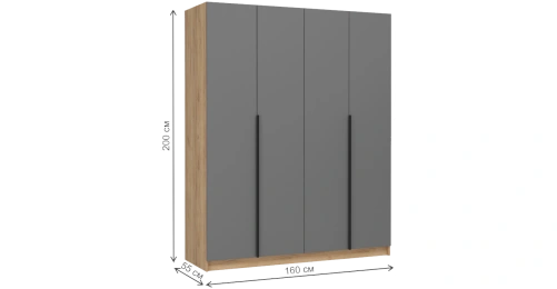 Шкаф четырехдверный Широн, распашной для одежды, графит серый / дуб крафт золото