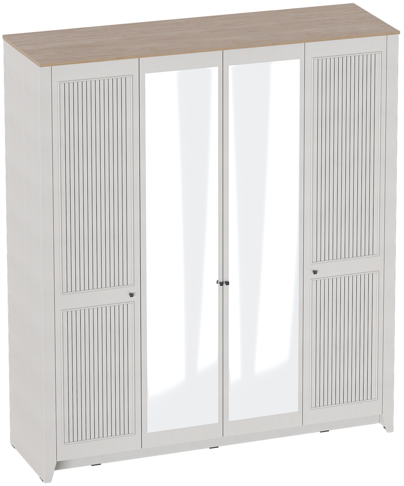 Шкаф 4 дверный Валенсия с зеркалом выполнен из (ЛДСП) в комбинации Дуб натуральный светлый / Персидский жемчуг.