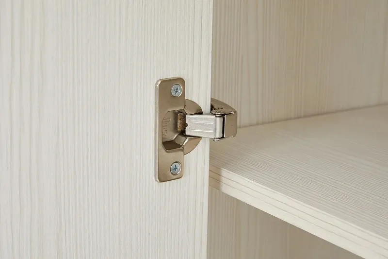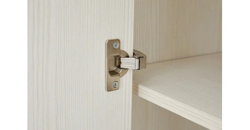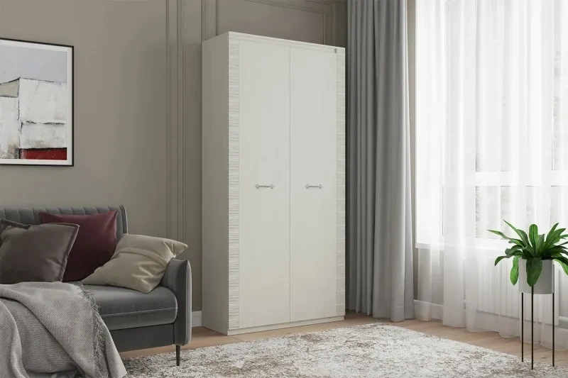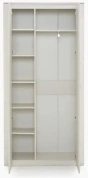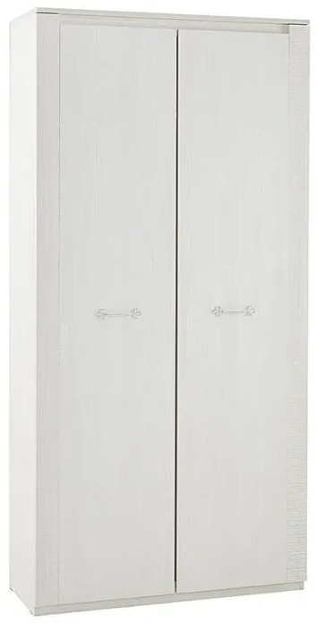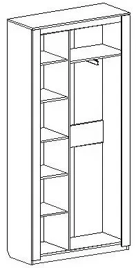 Двухдверный шкаф "Элана" с распашными дверцами имеет два отделения: отделение для белья с четырьмя съёмными и центральной стационарной полкой; платяное отделение со стационарной полкой и выдвижной стальной штангой.