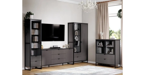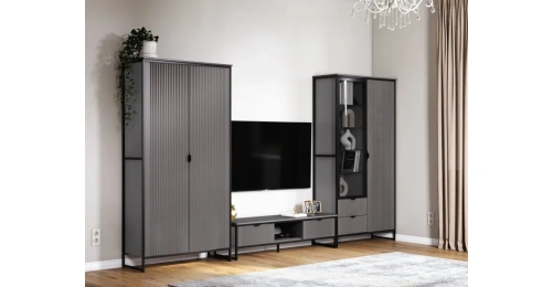 Коллекцию модульной гостиной "Нора" отличает современный оригинальный стиль. Декоративная продольная фрезеровка на фазадах из МДФ и опоры на металлокаркасе соответствуют модным тенденциям этого года в ведущих зарубежных коллекциях.