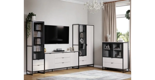 Коллекцию модульной гостиной "Нора" отличает современный оригинальный стиль. Декоративная продольная фрезеровка на фазадах из МДФ и опоры на металлокаркасе соответствуют модным тенденциям этого года в ведущих зарубежных коллекциях.