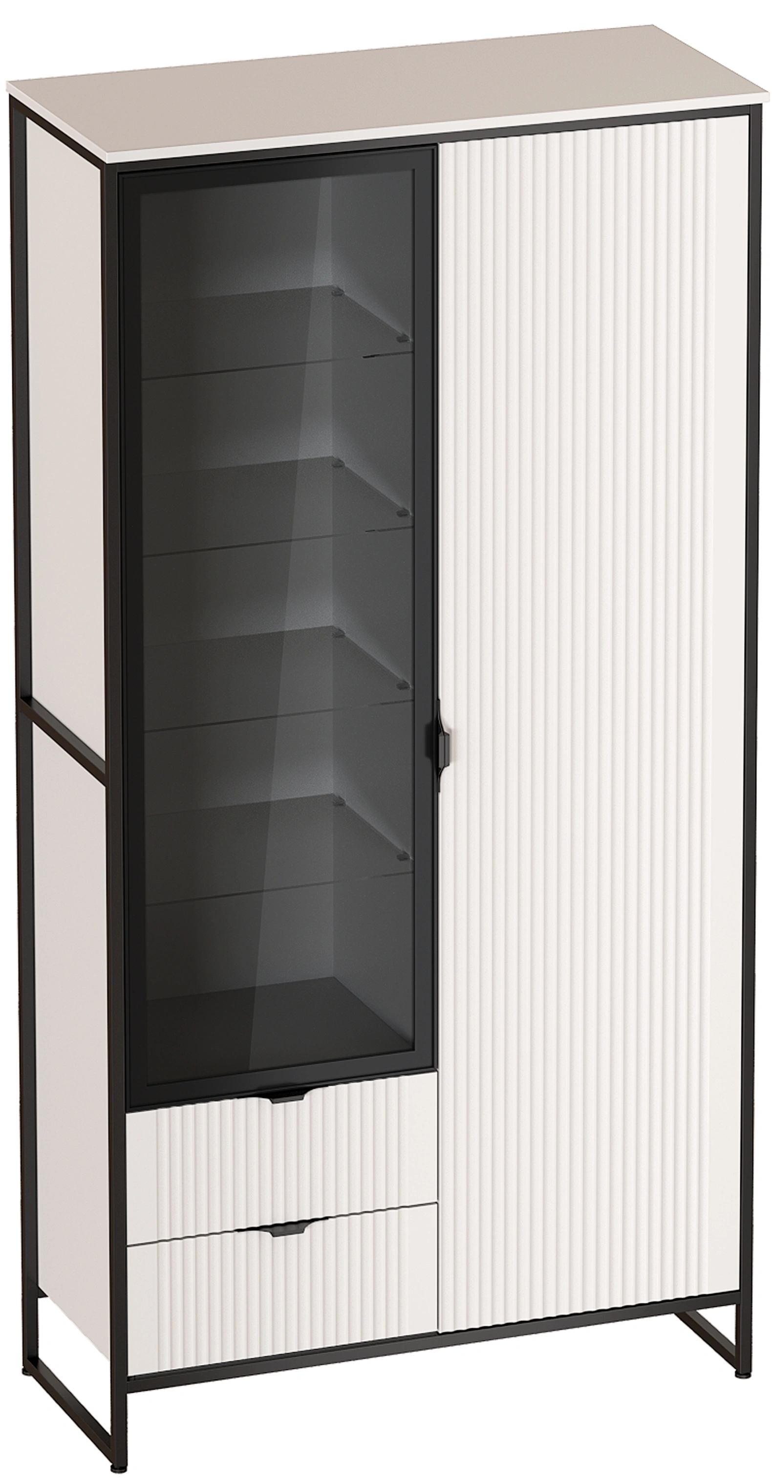Шкаф выполнен в двух вариантах исполнения: Металл Бруклин / Графит и Металл Бруклин / Персидский жемчуг.