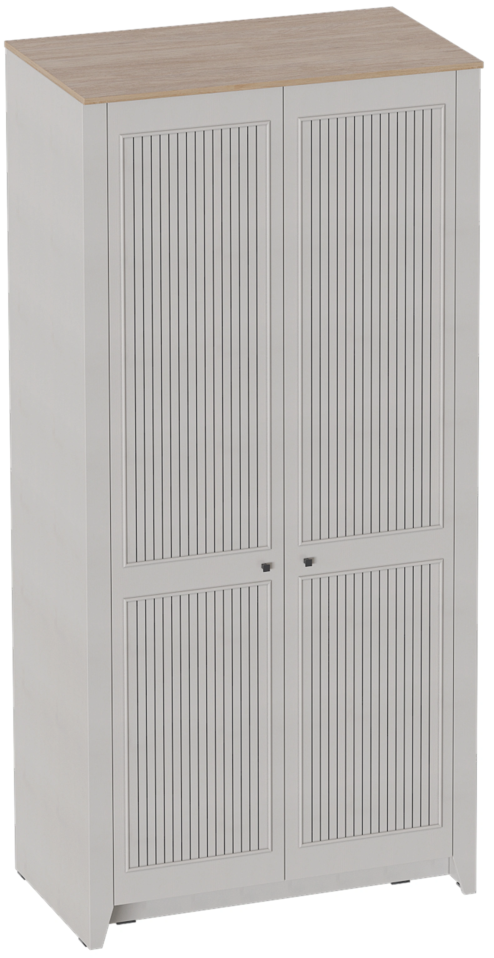 Шкаф 2 дверный Валенсия выполнен из (ЛДСП) в комбинации Дуб натуральный светлый / Персидский жемчуг.