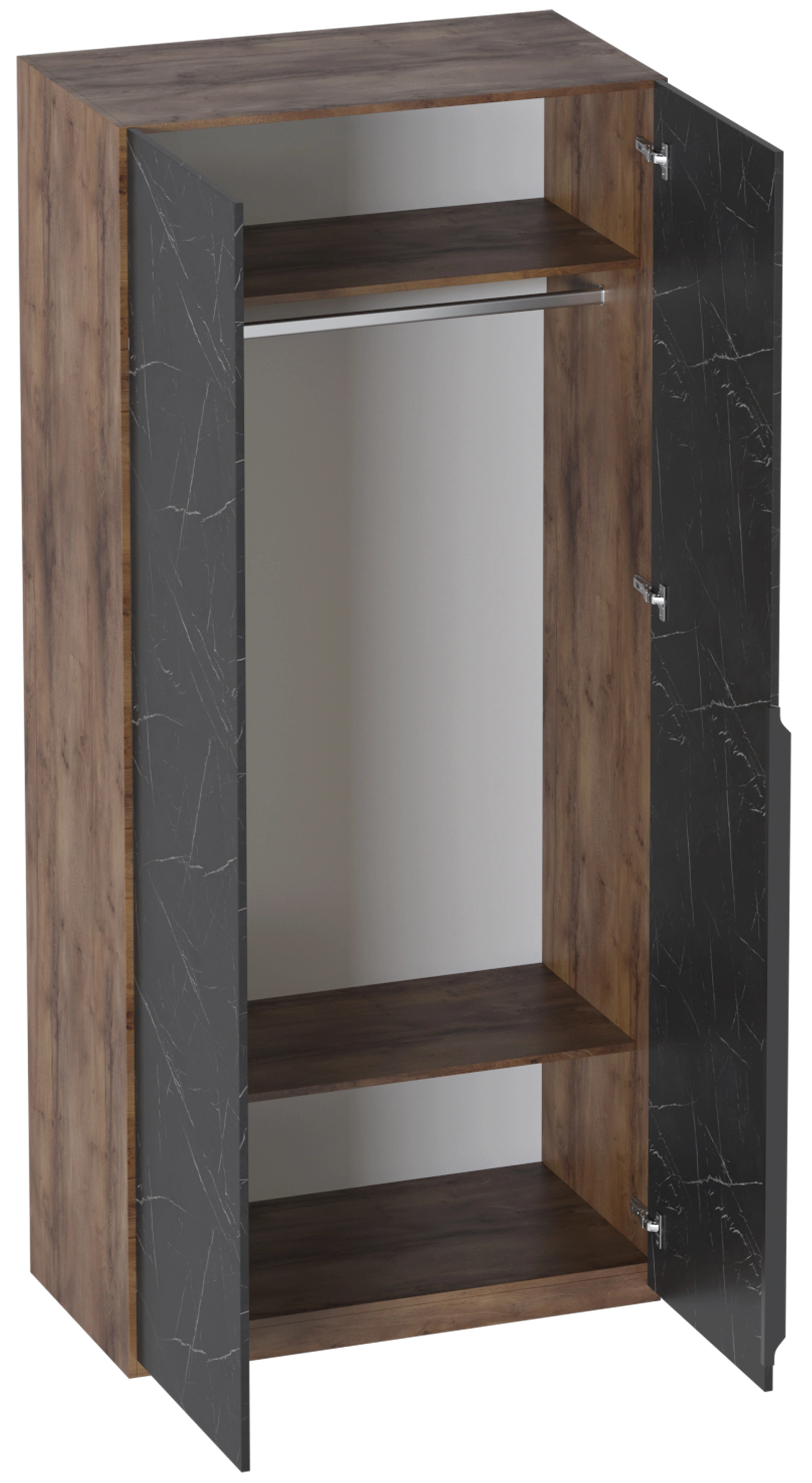 Шкаф двухстворчатый Браун, распашной для одежды, таксония / мрамор неро маркина