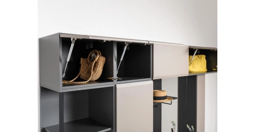 Распашная дверца открывается с помощью механизма-толкателя push-to-open.