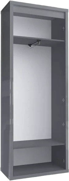 Корпус и фасады изготовлены из ламинированной древесностружечной плиты Серый Асфальт толщиной 38 и 16 мм. Торцевые поверхности закрыты кромками ABS. Экологически безопасное ЛДСП с классом эмиссии летучих веществ Е1.