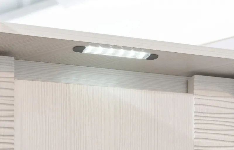 Отличительная часть серии Элана - вертикальные рифленые накладки на фасаде шкафа.