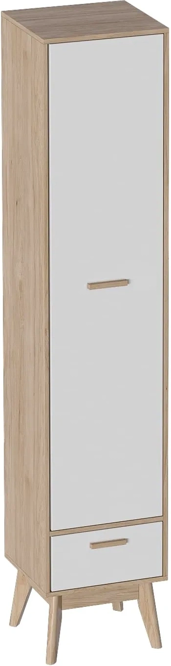Шкаф с двумя отделениями. Верхнее отделение закрыто дверью, за которой расположены две стационарных и две съемных полки, в нижнем - размещен выдвижной ящик на шариковых направляющих.
