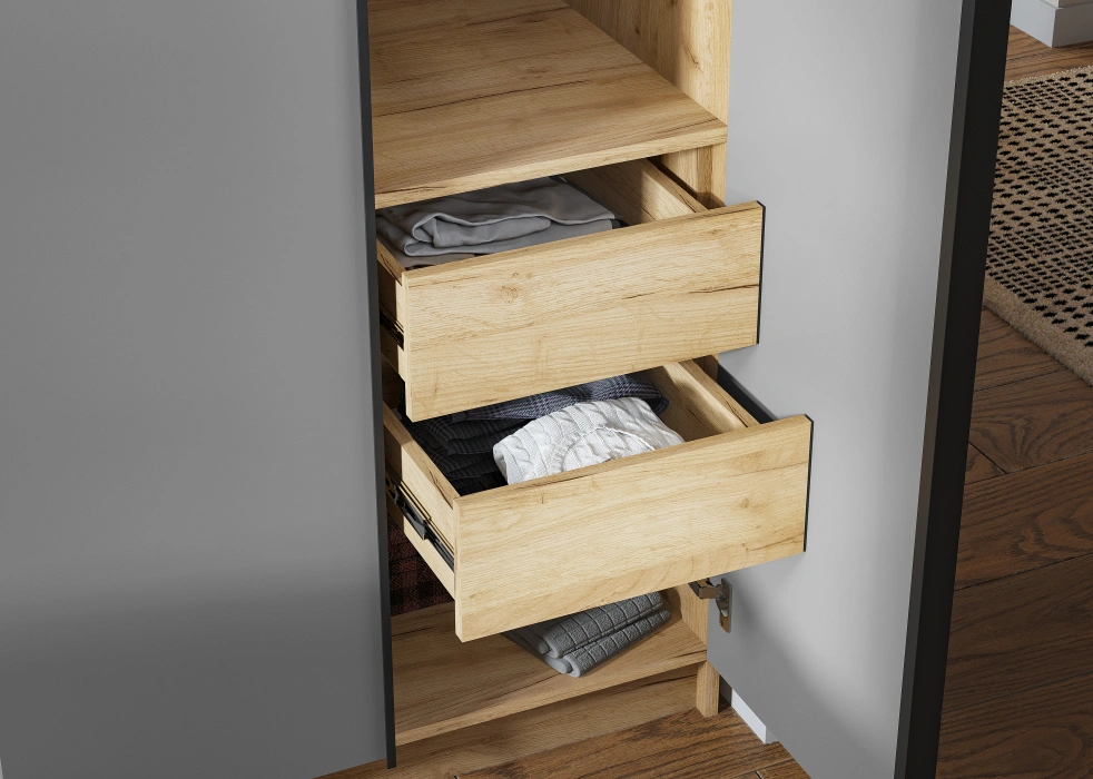 Материал каркаса - ЛДСП; Цвет каркаса - Серый графит / дуб крафт золото; Ширина - 80; Глубина - 55; Высота - 200;
