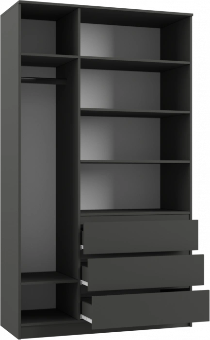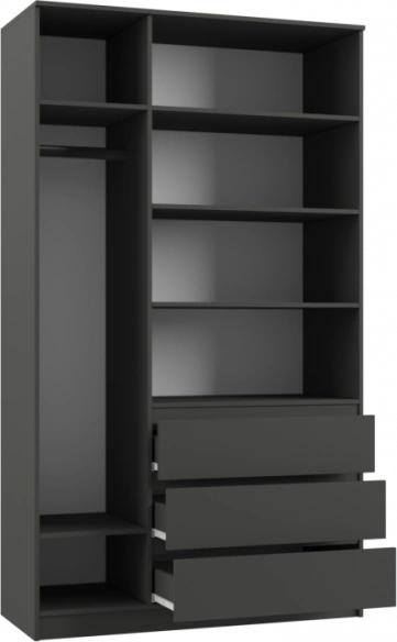 Шкаф трехдверный Мадера,распашной для одежды, ЛДСП, графит новый