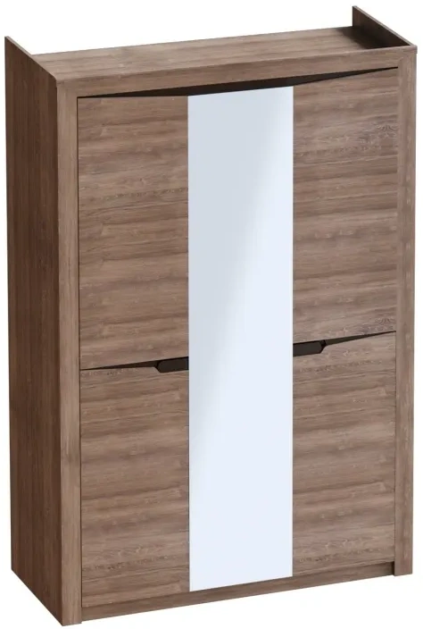 Трехдверный шкаф "Соренто" с зеркалом отлично подойдёт для спальни или прихожей и станет прекрасным дополнением к вашему интерьеру. На боковых дверях имеются декоративные вырезы, выполняющие функцию ручек. Внутреннее пространство шкафа разделено стенкой на два отделения: с полками и продольной стальной штангой, над которой размещается щитовая полка.