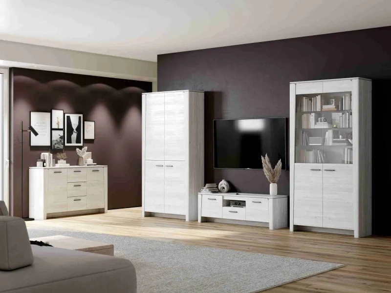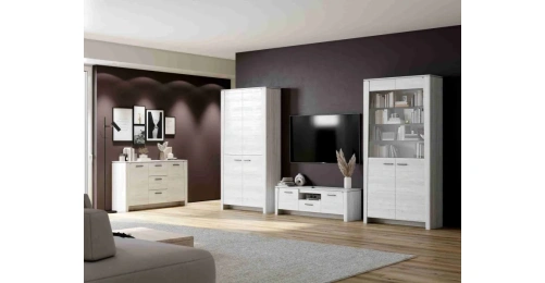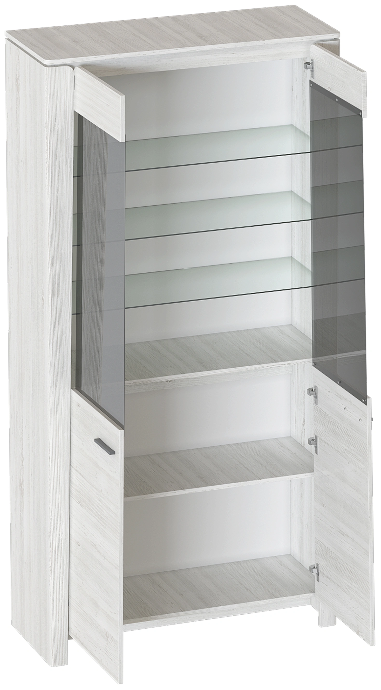 Двухдверный шкаф - витрина "Мальта" выполнен в светлых оттенках, он подойдет как для классической, так и для современной гостиной.