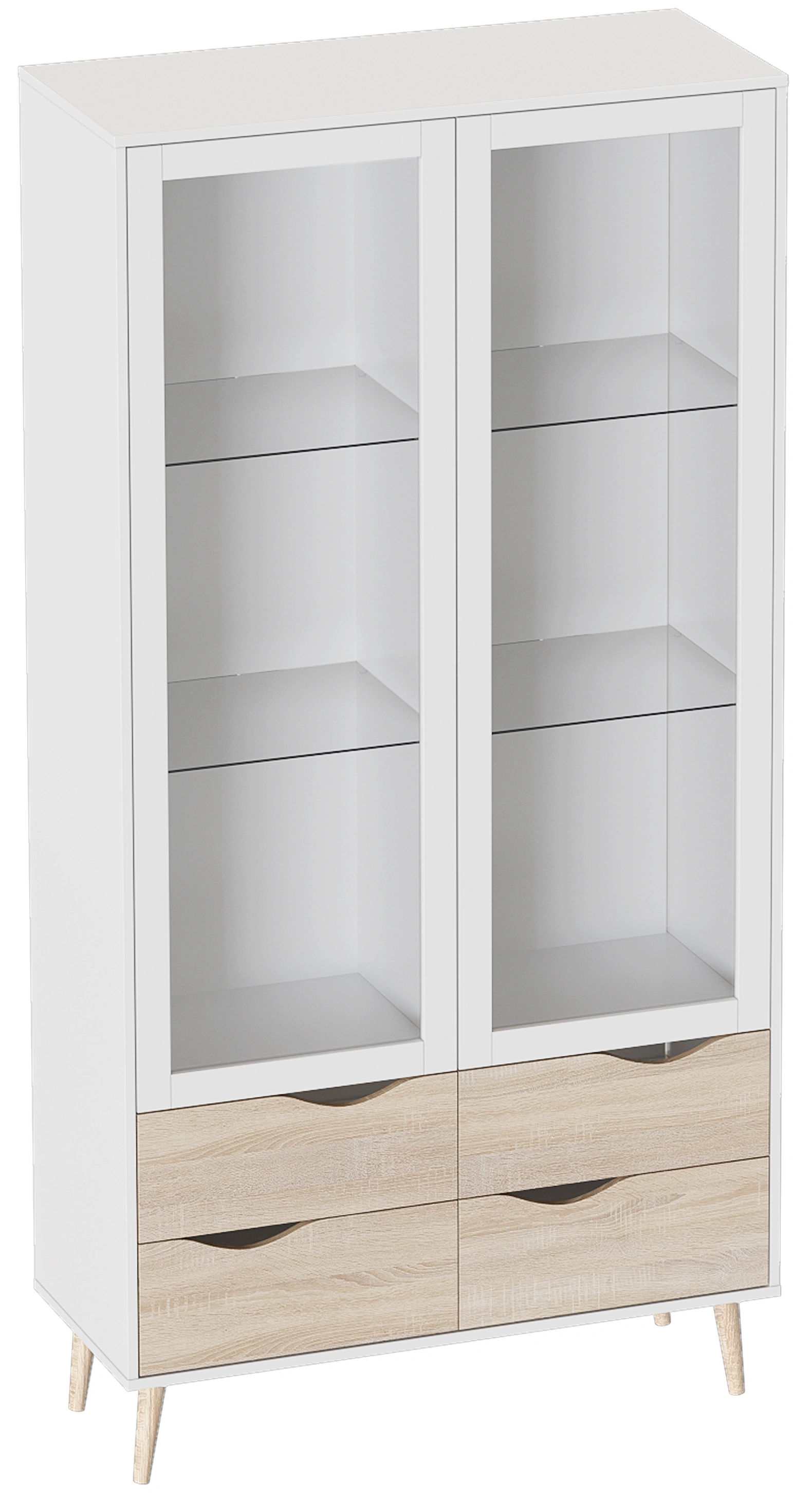 Шкаф-витрина "Соната" будет одинаково гармонично смотреться как в составе мебельной композиции, так и установленный отдельно. Распашные дверцы со стеклами и белоснежнымы фасадами из ЛДСП защитит коллекционный фарфор, декоративную посуду или книги от пыли, обеспечивая при этом прекрасный обзор всего содержимого полок. В нижней секции, оборудованной четырмя выдвижными ящиками с фасадами, декорированными прорезными ручками, можно хранить предметы, имеющие более утилитарное назначение.