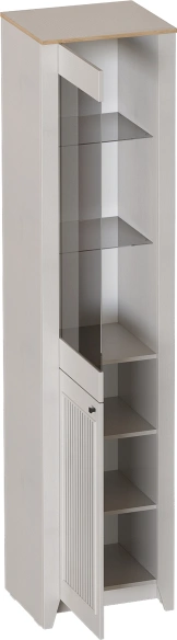 Шкаф-витрина Валенсия, левый, персидский жемчуг / дуб натуральный светлый